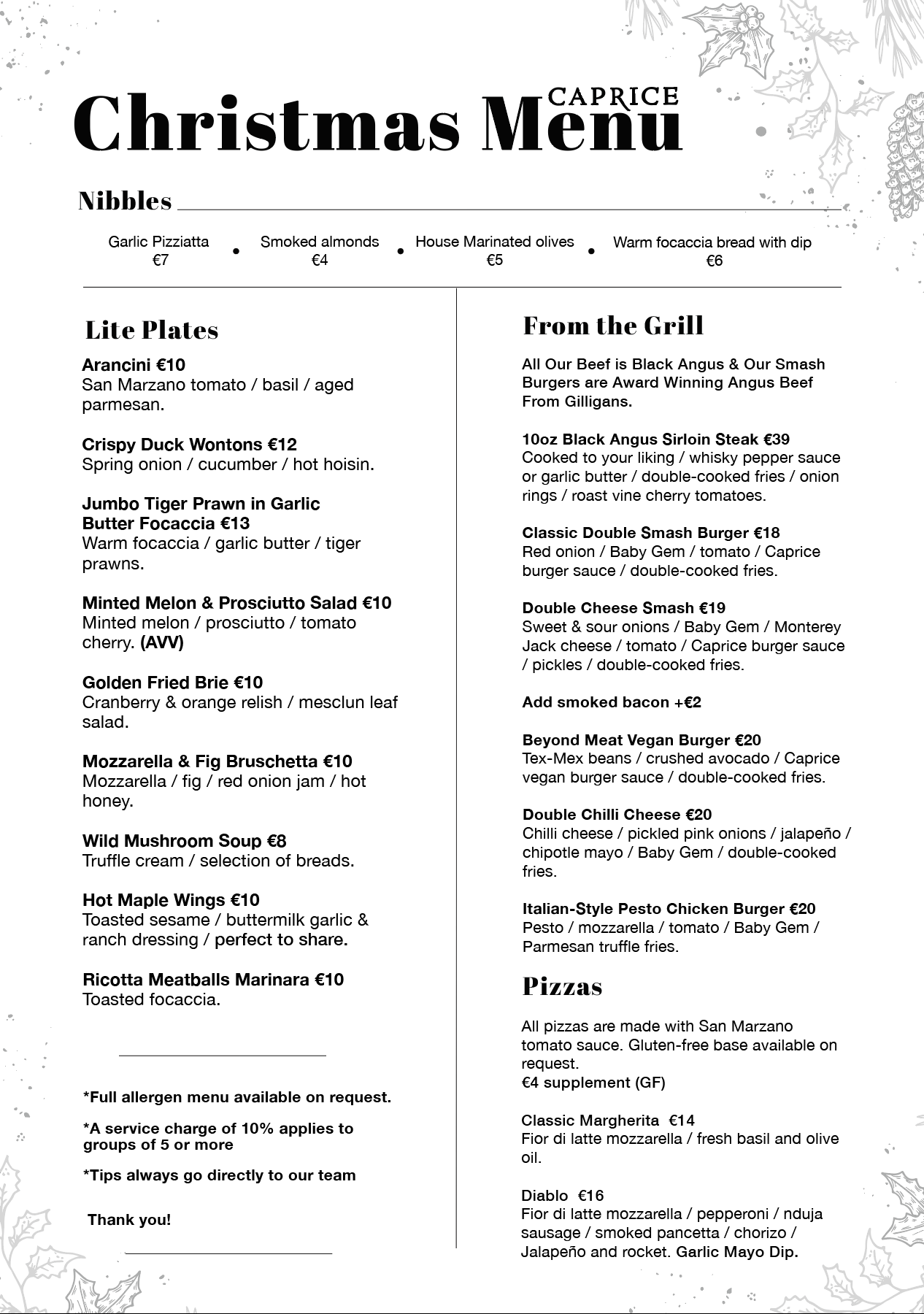 BRUNCH MENU 10AM TO 1PM