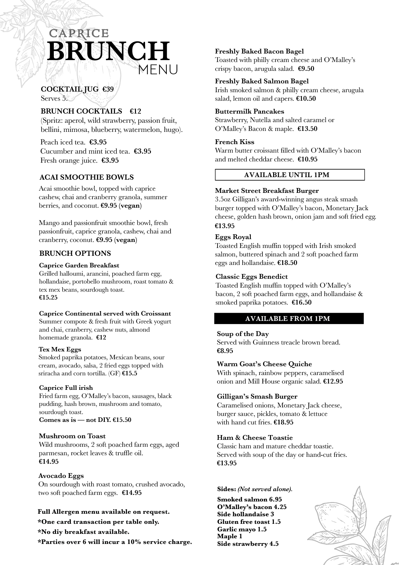 BRUNCH MENU 10AM TO 3.30PM